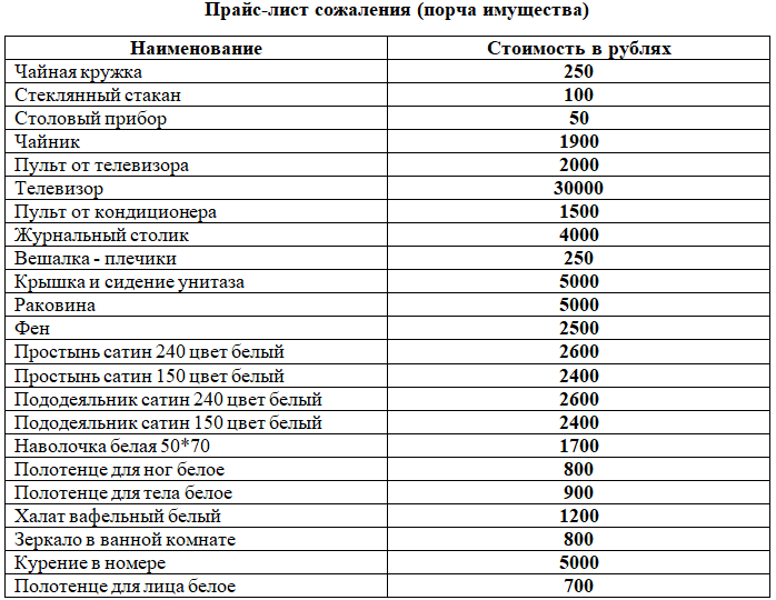 14. Гостям запрещено портить оборудование и мебель, делать надписи на стенах и имуществе, наклеивать на стены и инвентарь фотографии, рисунки, вырезки из газет и журналов.